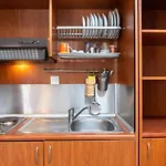 El apartamento dispone además de una pequeña cocina con un hervidor eléctrico, una nevera y una placa de cocción.